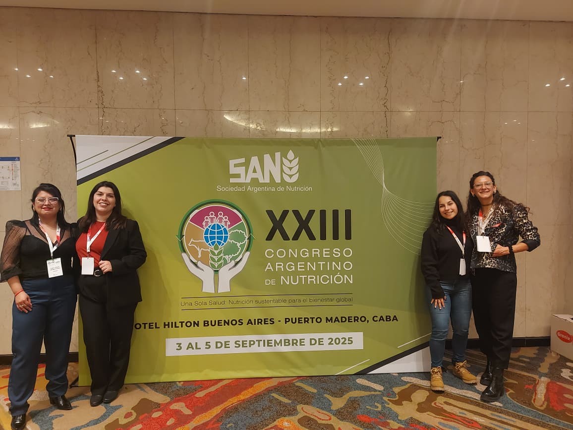 Durante el congreso, la Dra. Rocío Torrieri, la Lic. Bernardita D'Alfonso y la Lic. Sherley Farromeque Vásquez presentaron trabajos que reflejan las líneas de investigación que se desarrollan en el CENEXA, vinculadas al estudio de los determinantes nutricionales, metabólicos y endocrinos de diversas patologías. Las contribuciones de las profesionales abordaron temáticas actuales y de alto impacto en salud pública, destacándose por su rigurosidad metodológica y su aporte al conocimiento en el área. Además, los trabajos presentados por la Dra. Rocío Torrieri y la Lic. Sherley Farromeque Vásquez fueron reconocidos con una mención especial al ser seleccionados entre los tres mejores trabajos científicos del congreso, lo cual subraya la calidad y relevancia de las investigaciones desarrolladas en el centro.